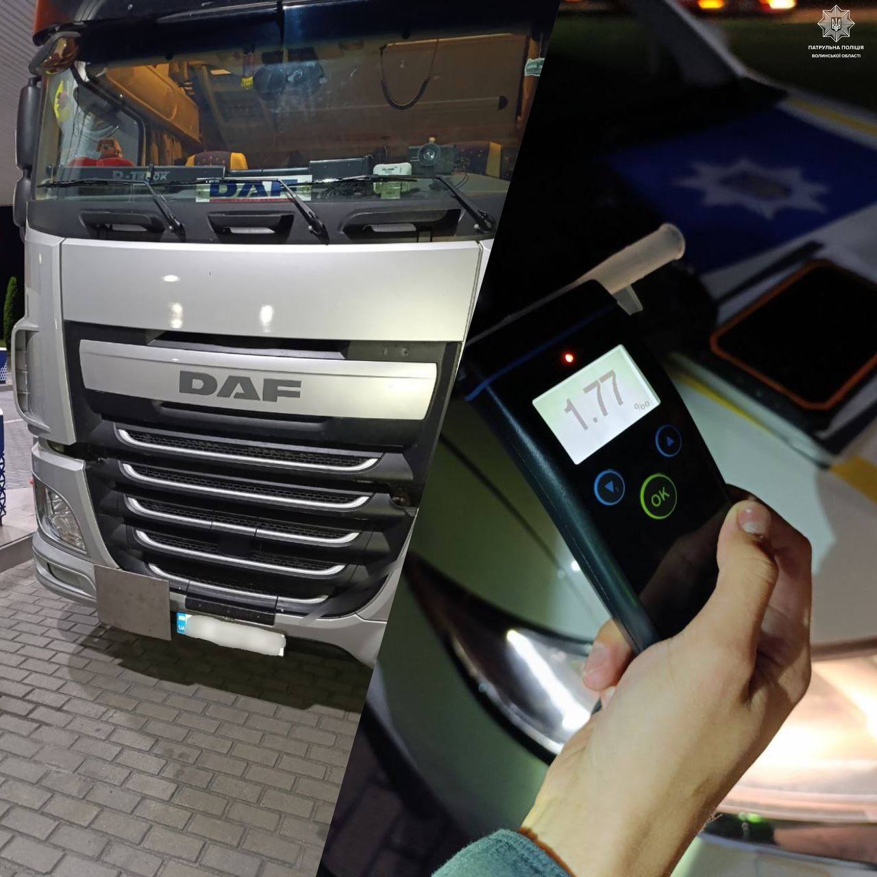 На Волині вночі спіймали водія вантажівки, в крові якого алкоголю було у 9 разів вище норми
