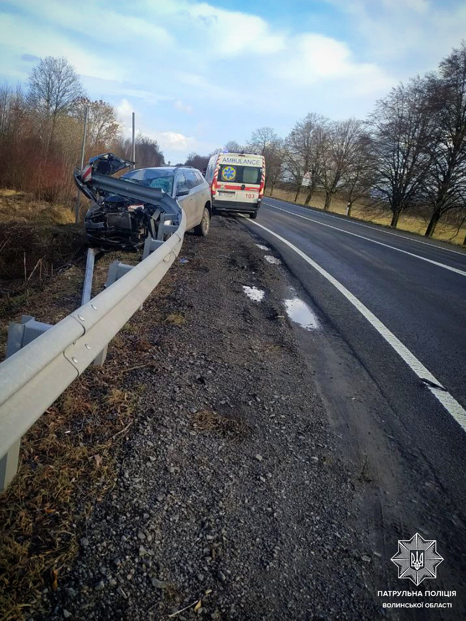 На Волині п'яний водій без прав на керування влетів у відбійник
