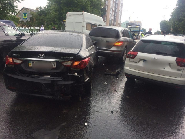На вулиці Ковельській він здійснив проїзд на жовтий сигнал світлофора і зіткнувся з двома іншими автомобілями.