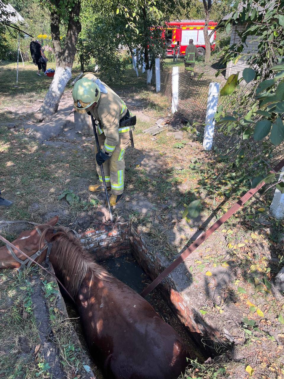 О 16:40 відділення рятувальників 6 ДПРЧ спрямували за викликом у с. Озеро Ківерцівської громади. Там на подвір'ї приватного домоволодіння у вигрібну яму провалився кінь.