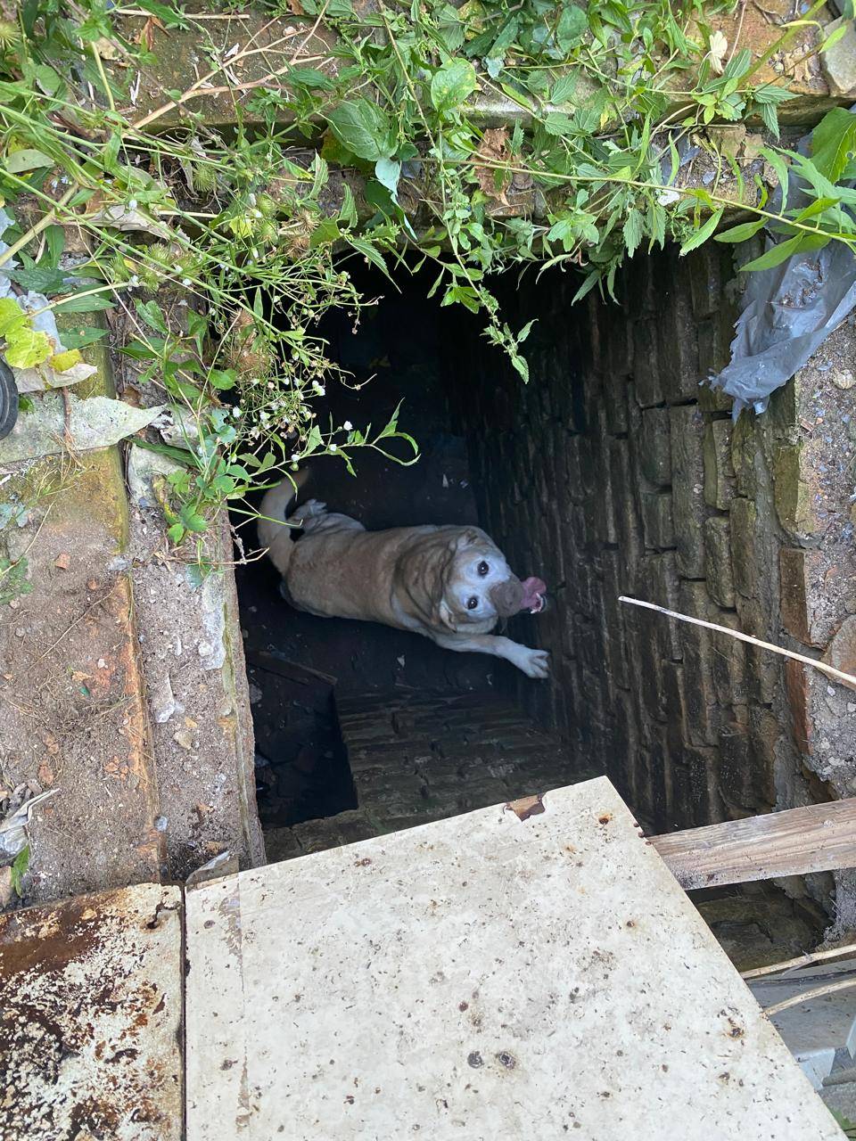 Рятувальники за допомогою собаколовки підійняли чотирилапого з ями.