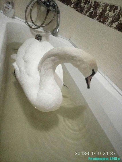 На озері Радожич, що у селі Гірники Ратнівського району, хлопчаки врятували лебедя. Пташку, яка замерзла й не могла злетіти, відігріли під батареєю та поселили у ванні.