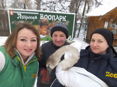 Лебедя передали автобусом, в якому їхали діти на Луцьк. Тут його вже зустрічали екологи і вони уже привезли його до Луцького зоопарку.
