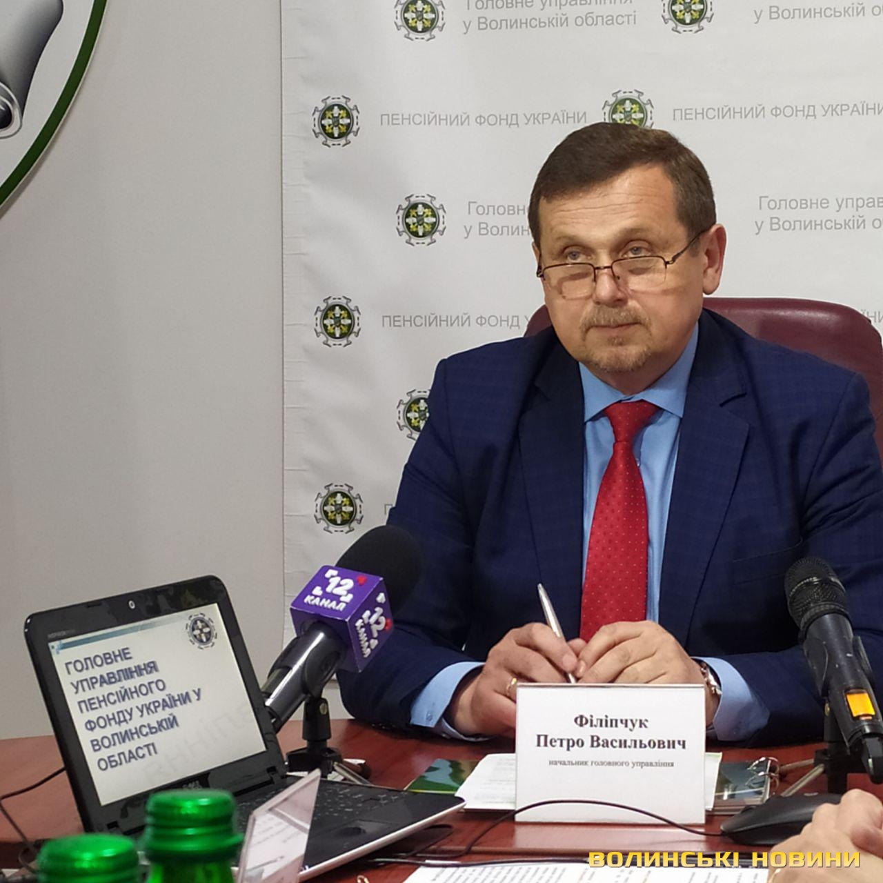 Про це під час прес-конференції сьогодні, 7 травня, повідомив начальник Головного управління пенсійного фонду у Волинській області Петро Філіпчук.