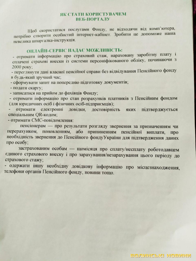 Разом із тим, начальник управління інформаційних систем та електронних реєстрів Головного управління пенсійного фонду у Волинській області Ольга Волдінер розповіла, що обласний пенсійний фонд працює над тим, щоб запровадити дистанційні послуги в електронному вигляді – фактично це дистанційне самообслуговування в онлайн-режимі, що працюватиме 24 години та 7 днів на добу.