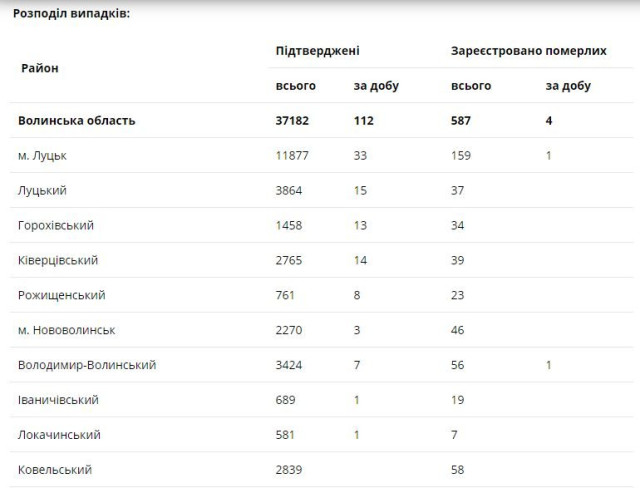 На Волині виявили 112 нових випадків COVID-19, четверо людей померли