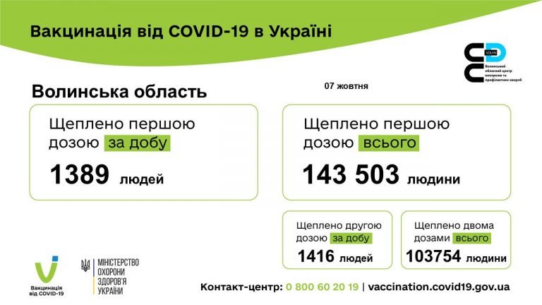 Станом на ранок 08.10.2021 року на Волині протягом попередньої доби зареєстровано 395 нових випадків коронавірусної хвороби COVID-19 (з них дітей – 41, медпрацівників – 13).