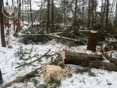 22 січня спеціалісти Державної екологічної інспекції у Волинській області відповідно до наказу щодо виявлення та запобігання адміністративних правопорушень зафіксувади факт незаконної порубки лісу.