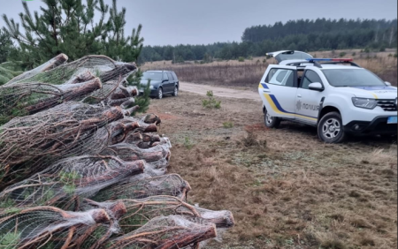 Державна екологічна інспекція та правоохоронні органи вживають заходів для встановлення осіб, причетних до незаконної заготівлі хвойних дерев.