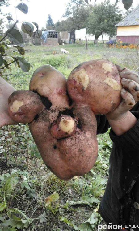 Що ж, пехівська картоплина цілком може стати рекордсменом не лише в Шацькому районі, а й Волині. На початку вересня біля міста Костопіль, що на Волині, під час збору врожаю знайшли гігантську картоплину.