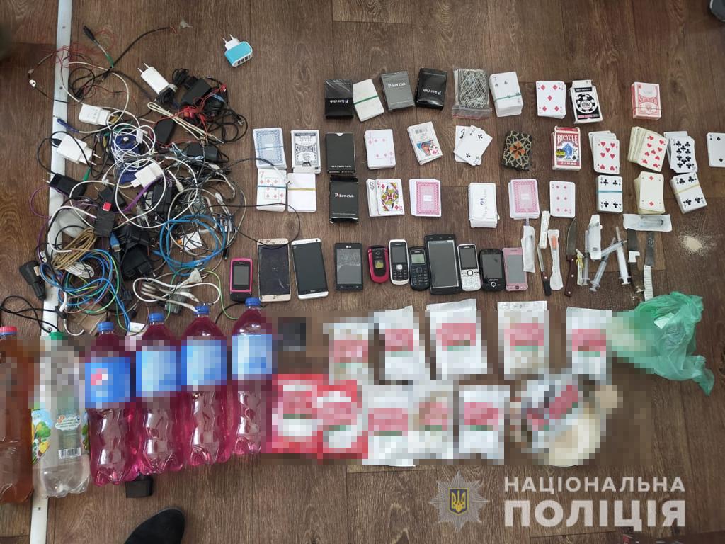 Як результат, виявили та вилучили: понад 250 таблеток метадону, понад 200 гр канабісу, понад 20 л фальсифікованих алкогольних напоїв, 57 мобільних телефонів з сім-картами різних операторів, банківські картки, «чорнові» записи фігурантів з номерами мобільних телефонів, банківськими рахунками, обліковими записами та паролями до них, пристрої та засоби для вживання наркотичних засобів.