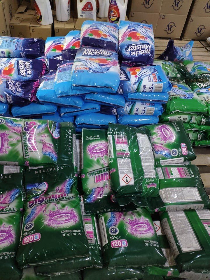 У ході обшуку вилучено понад 0,5 т контрафактного антисептика, а також велику кількість мийних та дезінфікуючих засобів відомих європейських брендів.