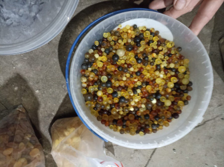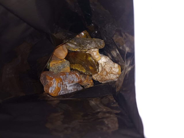 Згодом у його домоволодінні провели санкціоновані обшуки, під час яких вилучили оброблені предмети з каміння, схожого на бурштин, та дрібне каміння бурштину. Таке ж каміння знайдено ще у двох мешканців району. Загалом вилучено понад 30 кг.