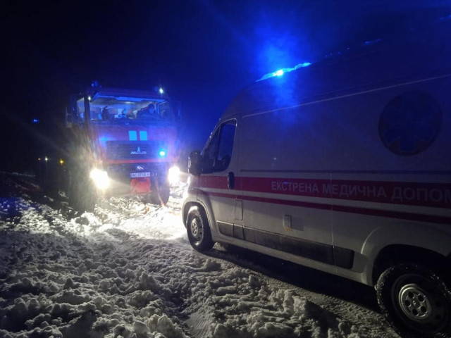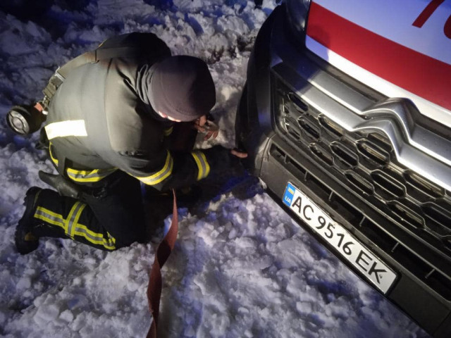 Рятувальники 7-Державної пожежно-рятувальної частини м.Володимира витягнули із снігового замету карету швидкої допомоги опівночі 17 грудня біля с. Хмелів Володимирського району.