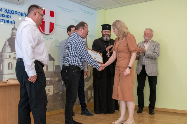 На добру справу благословив митрополит Луцький і Волинський Михаїл. Він зазначив, що у церкви та галузі охорони здоров’я багато спільного – зцілення душі і тіла, і навіть символ однаковий – хрест. Присутні склали спільну молитву за людей у білих халатах.