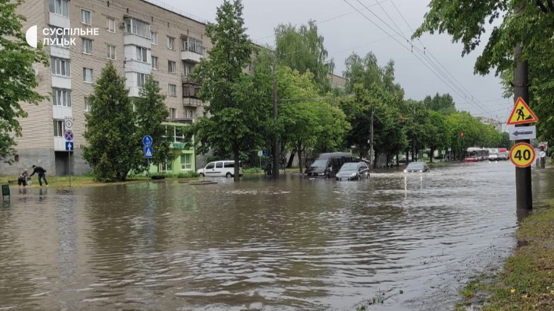 У Луцьку, де через зливу затопило частину вулиць, випало 33 мм опадів – це 41% від місячної норми, повідомляє Суспільне з посиланням на обласний центр з гідрометеорології.