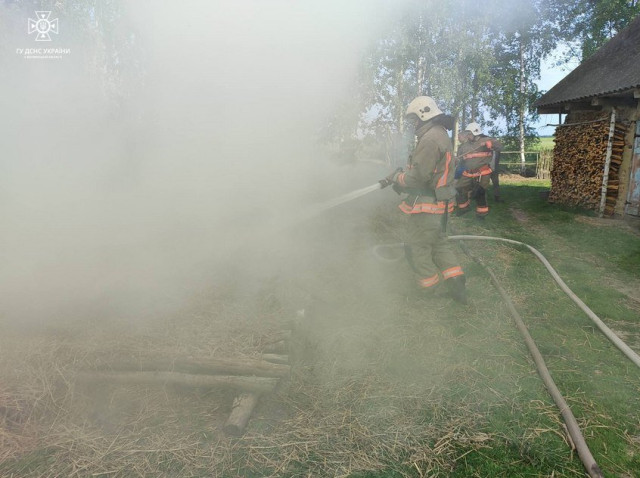 Імовірно, з цієї ж причини загорілася господарська солома на присадибній ділянці у с. Видерта Камінь-Каширського району. Пожежу ліквідували вогнеборці місцевої пожежної охорони с. Видерта та рятувальники 8 ДПРЧ м. Каменя-Каширського.