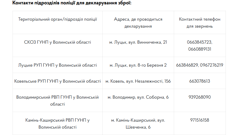 Починаючи з 25 листопада, відколи вступив у дію Закону України «Про забезпечення участі цивільних осіб у захисті України» щодо вдосконалення порядку отримання, декларування та поводження з вогнепальною зброєю, до управлінь та підрозділів поліції Волині звернулося 79 осіб, у яких правоохоронці задекларували 81 одиницю вогнепальної зброї.