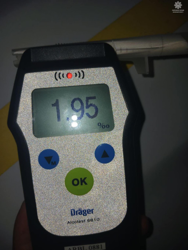 Під час спілкування із винуватцем патрульні виявили у неї ознаки алкогольного спʼяніння. Жінка пройшла огляд на місці, результат – 0, 83 проміле.