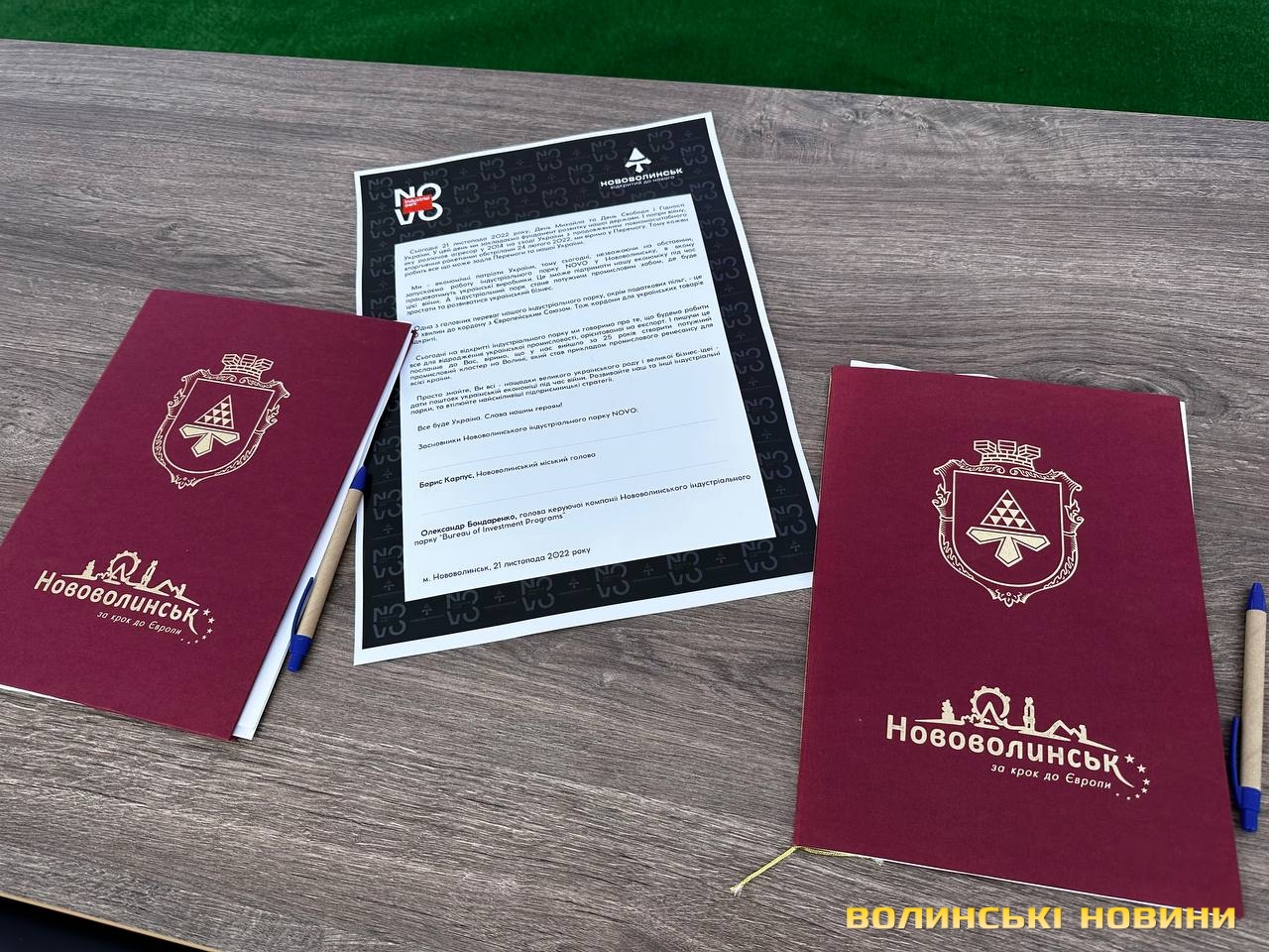 Із нагоди відкриття індустріального парку NOVO Борис Карпус і голова керівної компанії індустріального парку Олександр Бондаренко підписали відповідний документ.У Нововолинського індустріального парку вже є попередні домовленості з підприємствами зі сфери переробки риби, виробництва харчової продукції та логістики про зобов’язання увійти в парк.