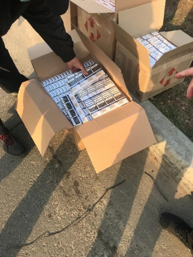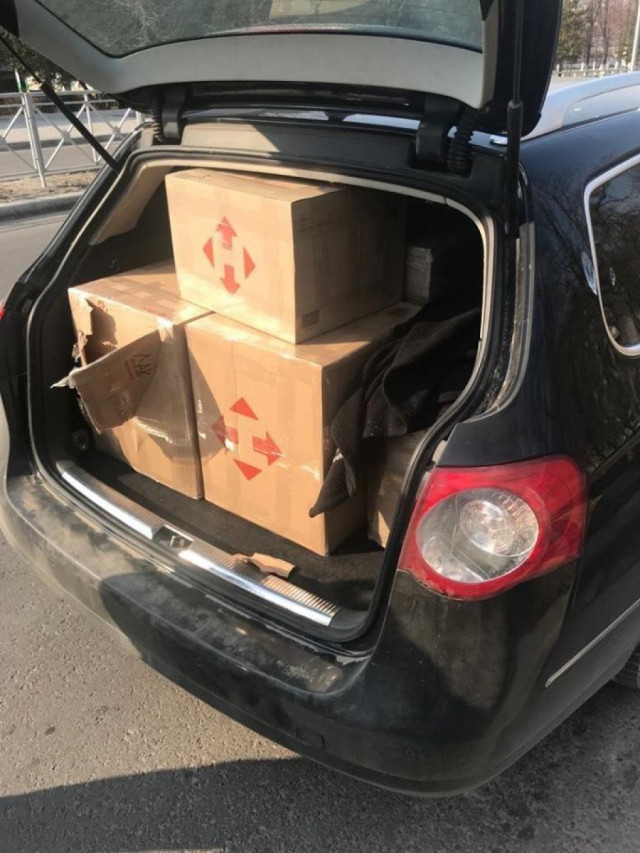 Під час його огляду в салоні правоохоронці виявили картонні ящики «Нова Пошта», у яких знаходились тютюнові вироби. Загалом 7 ящиків, з понад 3 тисячами пачок сигарет різних марок вилучили представники поліції. Тривають подальші процесуальні дії.