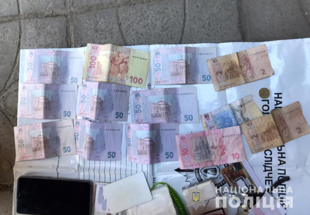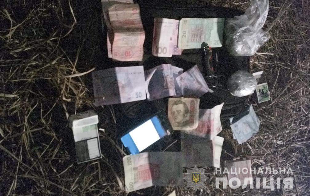 При поверхневому огляді у зловмисника вилучили гроші та два поліетиленових пакети з рослинною речовиною, схожою на канабіс, які він зберігав з метою збуту.