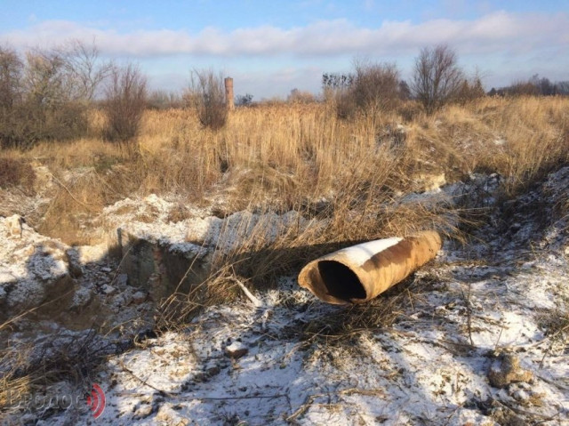 Довжелезні, великого діаметру труби, викопані на полях фільтрації цукрового заводу, лежать при автошляху з Володимира-Волинського на Луцьк.