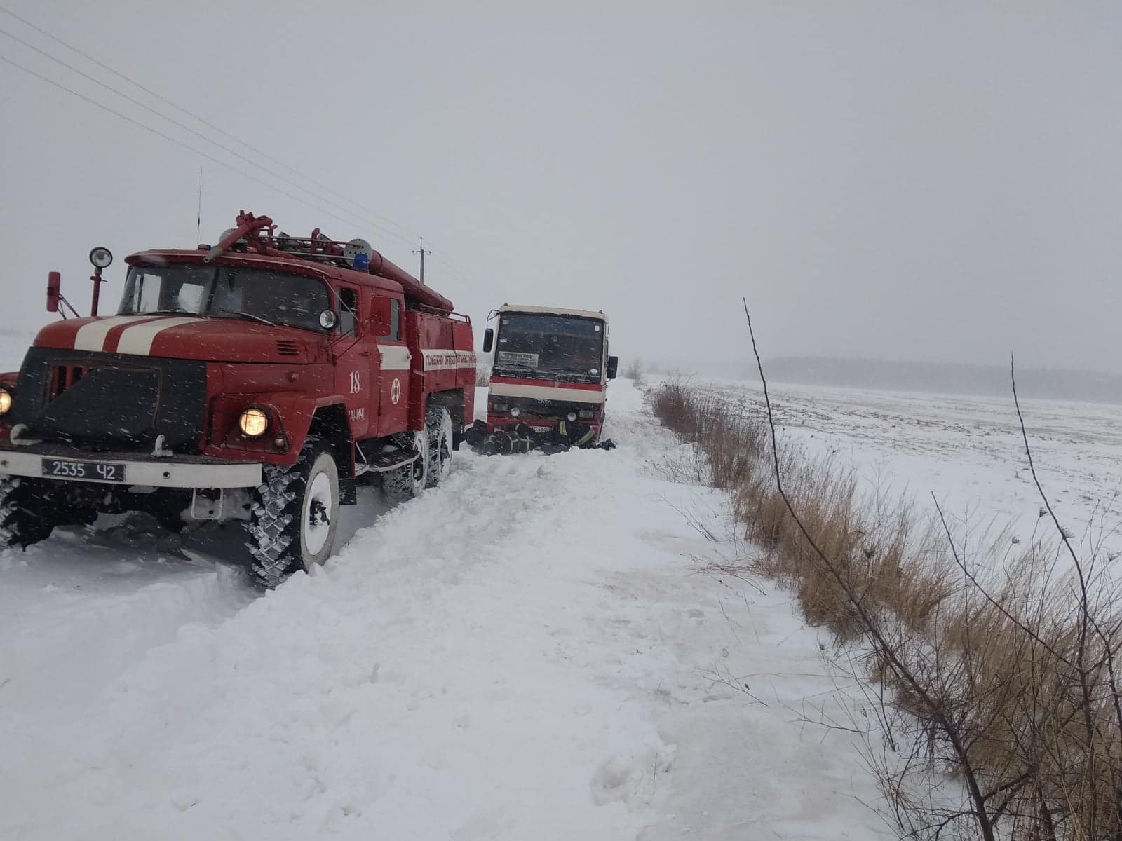 Серед автомобілів, які витягнули зі снігу, 3 рейсові автобуси, 1 шкільний автобус, автомобіль швидкої невідкладної допомоги, 3 вантажівки. Рятувальники надали допомогу 23 водіям та пасажирам транспортних засобів, які потрапили у замети.
