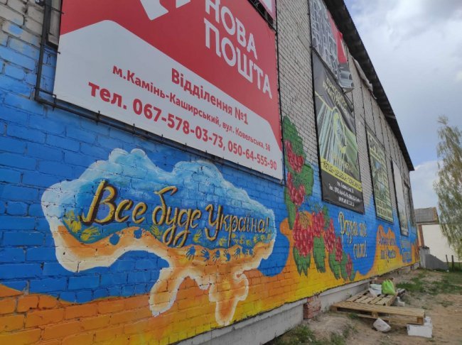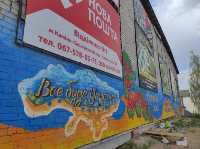 У Камені-Каширському на стінах однієї з будівель з'явився патріотичний мурал.