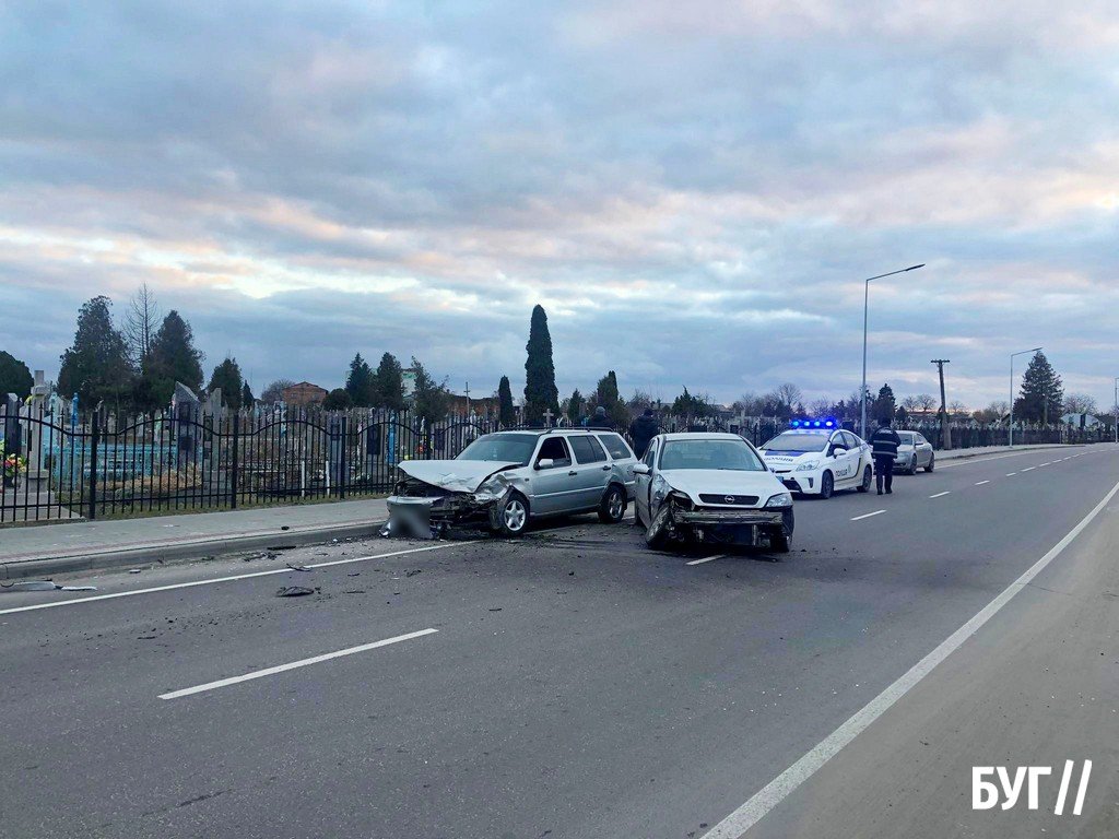 Аварія трапилась біля старого кладовища. Не розминулися легкові автомобілі Opel та Volkswagen. Opel в’їхав у бордюр, від чого автівку розвернуло, й у неї врізався Volkswagen, який рухався по зустрічній смузі.