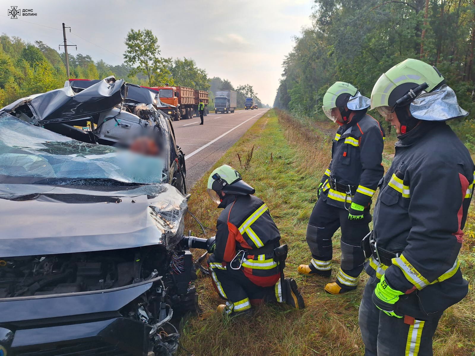 Як повідомили у ДСНС Волині, у легковику перебувала жінка і двоє дітей. У результаті аварії 35-річна водійка легковика отримала травми, несумісні з життям.