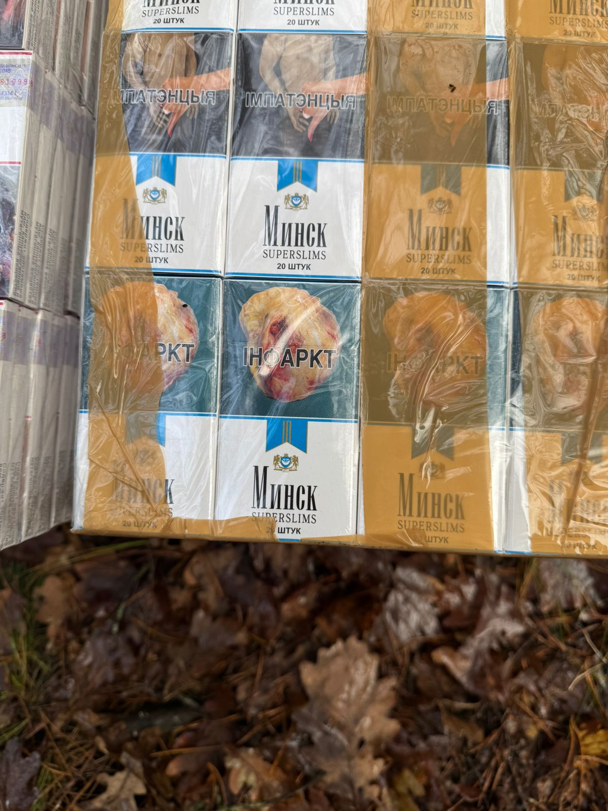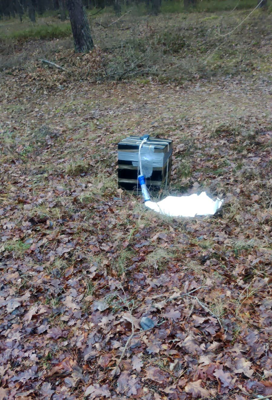 Пакунок був обмотаний чорною поліетиленовою плівкою, до нього кріпився канат із залишками повітряної кулі. Всередині знаходилося 1500 пачок цигарок марки «Мінськ» з акцизними марками республіки Білорусь, а також два GPS-пристрої: один із SIM-карткою білоруського оператора зв’язку, інший – із SIM-карткою оператора Республіки Польща.