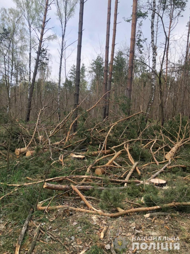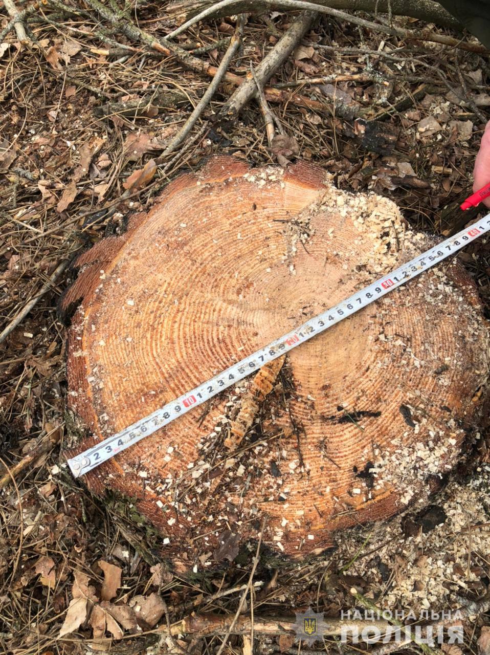 Місце порубки поліцейські встановили, а 36 колод сосни та бензопилу вилучили.