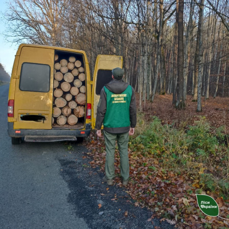 Працівники внутрішньої безпеки ДП «Ліси України» спільно з поліцією сьогодні вранці зупинили бус. При огляді виявилося, що він повністю завантажений деревиною без документів.