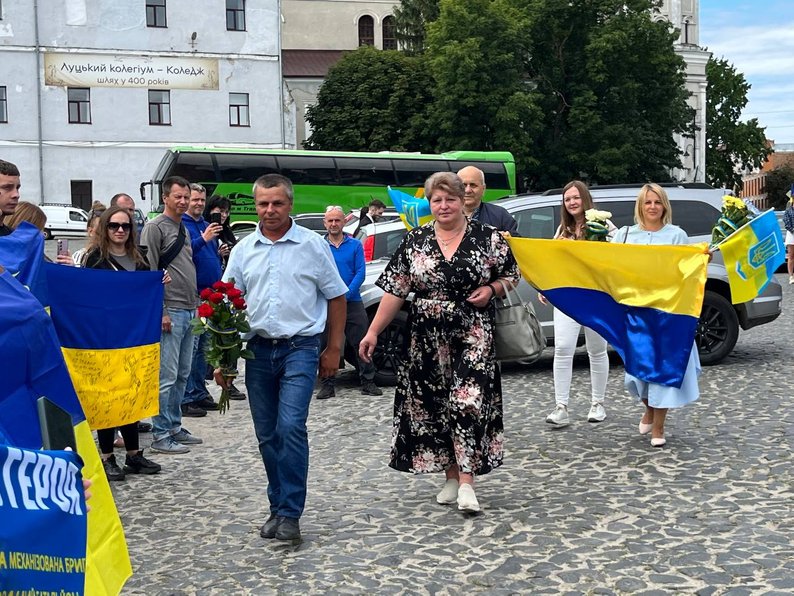 Привітати волинянина з поверненням прийшли рідні, друзі, знайомі, активісти, жителі громади. Організатором зустрічі є громадська організація «Автомайдан Луцьк». На знак пошани та подяки захисникові люди організували живий ланцюг.