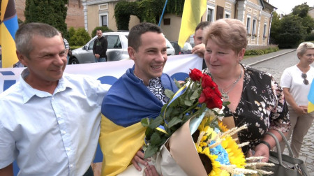 «Добре почуваюся, особливо в Україні. Дуже такий приємний прийом. Сильно розхвилювався я... Дуже вдячний усім людям, які зібралися тут! Сьогодні ще така дата – День Прапора. Всіх вітаю зі святом», – сказав захисник.Денис Пшава розповів: служив у Державній спеціальній службі транспорту із 2020 року, потрапив у полон, перебуваючи в Маріуполі на Донеччині.
