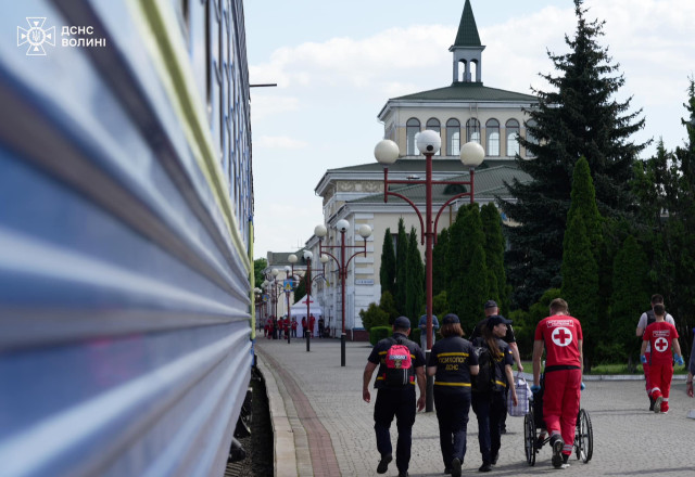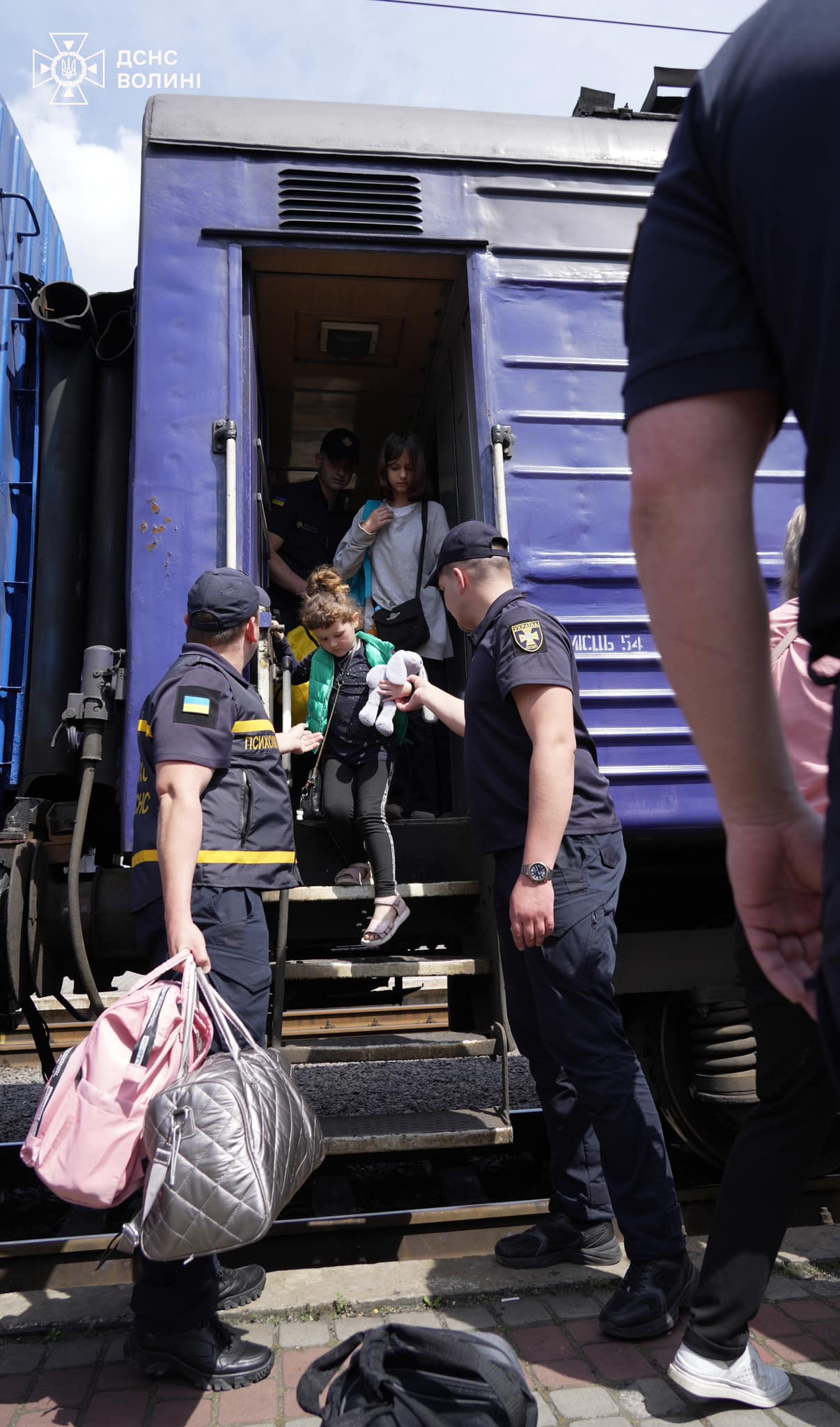 Волинські рятувальники зустріли евакуаційний потяг з Донеччини.