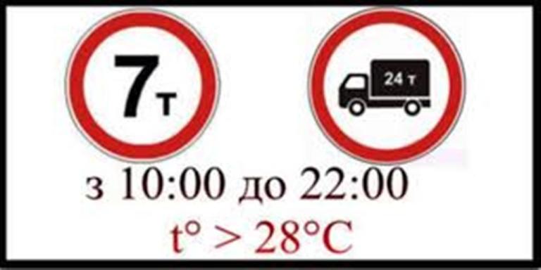 На Волині обмежили рух автотранспорту загальною масою понад 24 тонни з навантаженням 7 і більше тонн на вісь. Оскільки відповідна заборона діє за температури повітря +28ºС і вище згідно з постановою Кабінет Міністрів України № 869 від 21 жовтня 2015 року усіма українськими автомобільними дорогами державного значення, інформує Служба автомобільних доріг Волині.