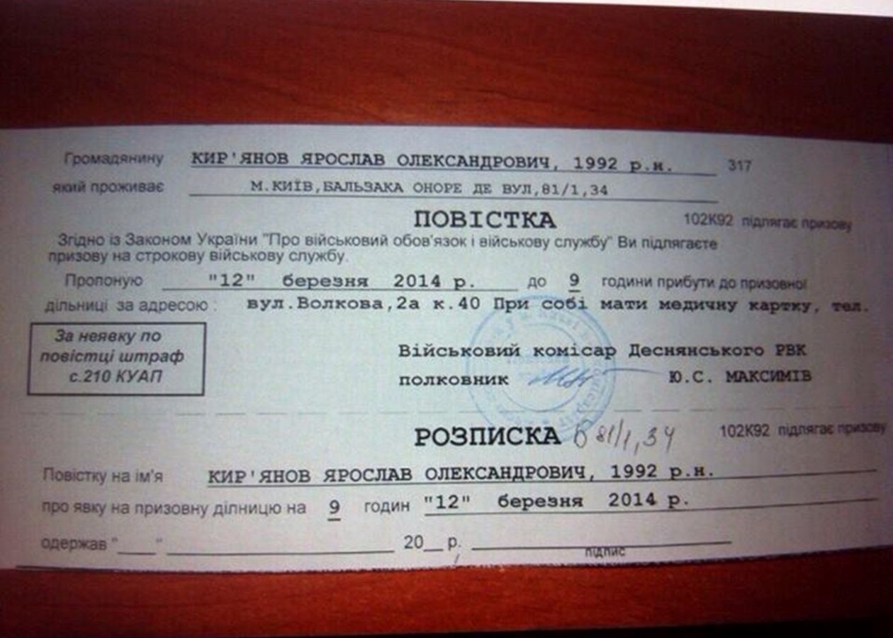 Фактично її можуть вручити особисто в руки в будь-якому місці: за місцем проживання, на вулиці, на блокпостах, на робочому місці, в магазині. Однак перед врученням повістки встановлюють особу військовозобов’язаного.