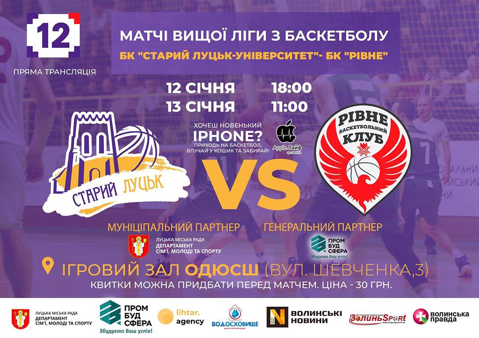 В найближчі вихідні до обласного центру Волині повертається баскетбольний сезон Вищої ліги чемпіонату України з баскетболу: БК «Старий Луцьк- Університет» зіграє два матчі проти БК «Рівне».
