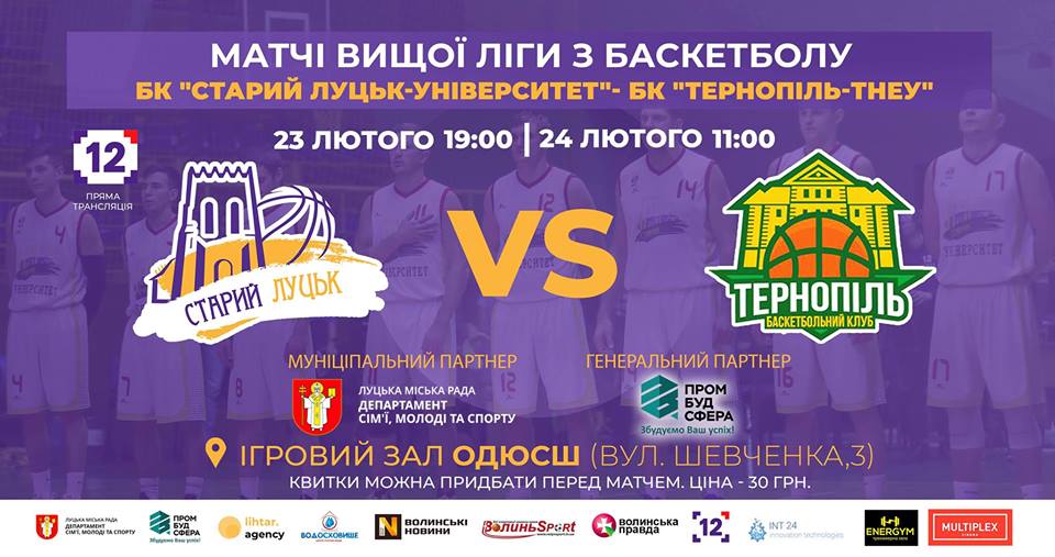 На найближчих вихідних баскетбольний клуб «Старий Луцьк – Університет» зіграє два матчі проти лідера другої групи Вищої ліги чемпіонату України баскетбольного клубу «Тернопіль-ТНЕУ».