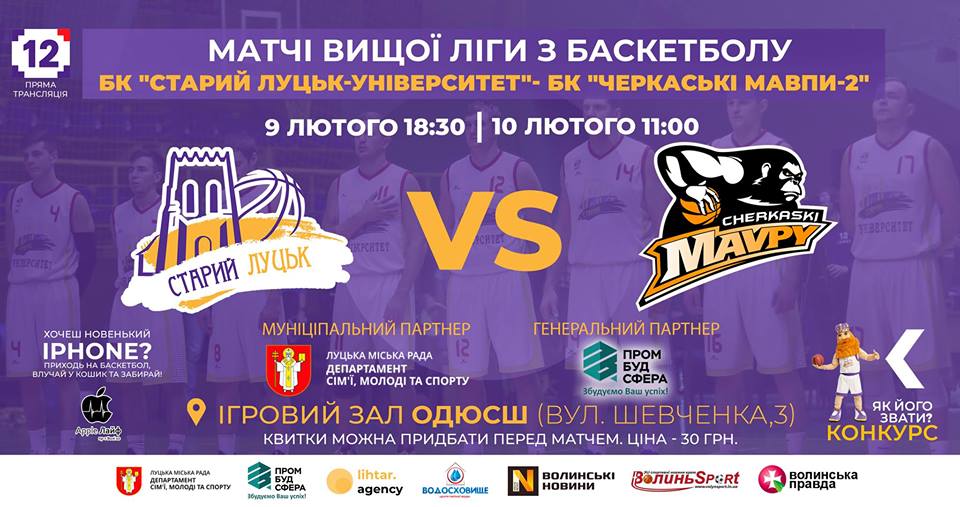 Баскетбольний клуб «Старий Луцьк – Університет» на найближчих вихідних зіграє два матчі Вищої ліги чемпіонату України з баскетболу проти баскетбольного клубу «Черкаські Мавпи-2».