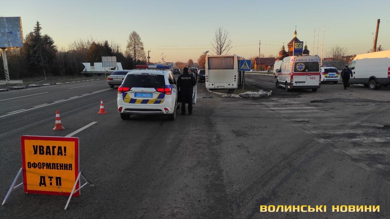 На виїзді з Луцька зіткнулися легковик та рейсовий автобус, є постраждалі. Фото, відео