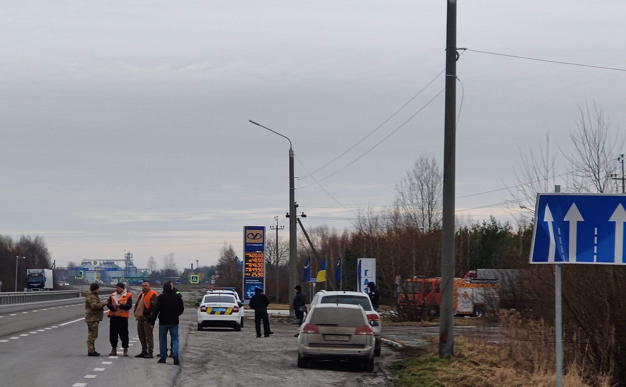 На місці перебуває поліція, але вона забороняє рух в коменданську годину. Вночі водії будуть в автомобілях.