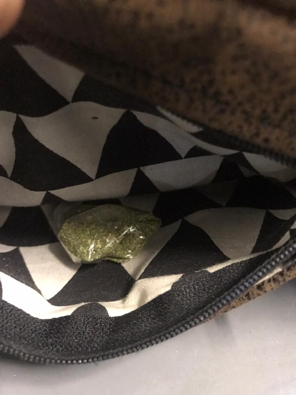 Пес вказав правоохоронцям на одну із сумок. Як з’ясувалося згодом – не даремно. Всередині сумочки 28-річного мешканця Чернігівщини знаходився поліетиленовий пакет з речовиною рослинного походження сіро-зеленого кольору.