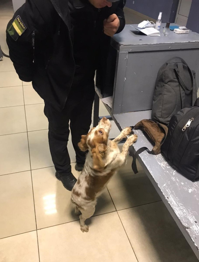 До проведення спільного з митниками огляду багажу було залучено службового собаку прикордонників, спеціально натренованого на пошук наркотиків.