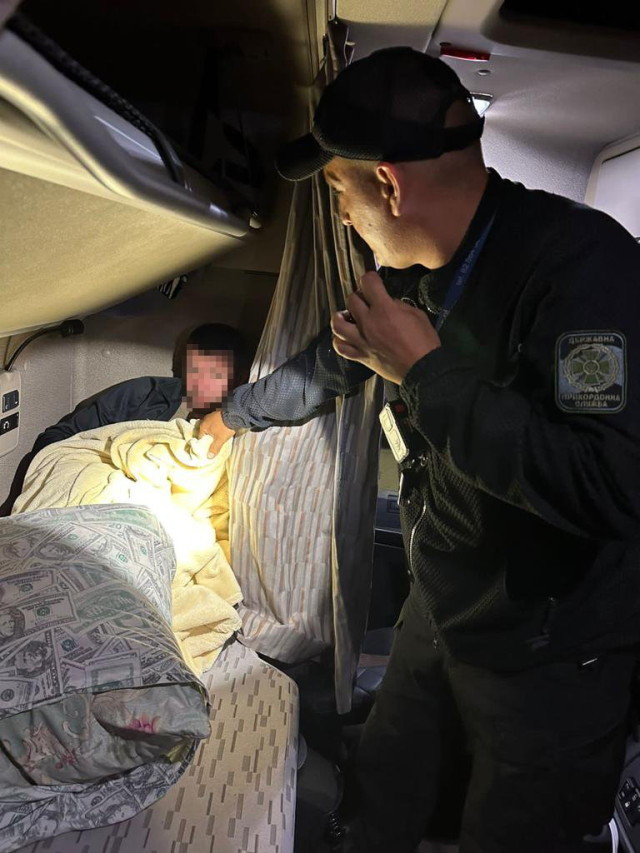 Перевіряючи кабіну, прикордонник натрапив на чоловіка, котрий тишком-нишком сидів під ковдрою на спальному місці. 35-річний киянин, не маючи законних підстав для виїзду за кордон, вирішив потрапити туди у незаконний спосіб. І допомогти йому у цьому погодився водій-далекобійник. Як з'ясували правоохоронці, за свою послугу перевізник узяв плату в розмірі 5 тисяч доларів США.