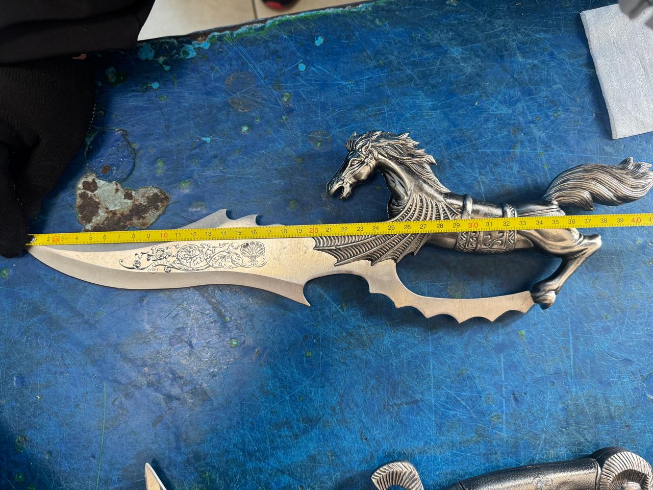 Крім того, у багажі іноземця виявили кілька ножів із декоративними ручками у вигляді тварин та художнім гравіюванням. Вони можуть належати до холодної зброї, тому їх прикордонники передали співробітникам поліції.