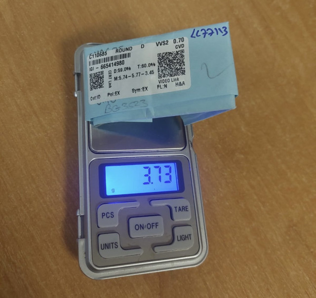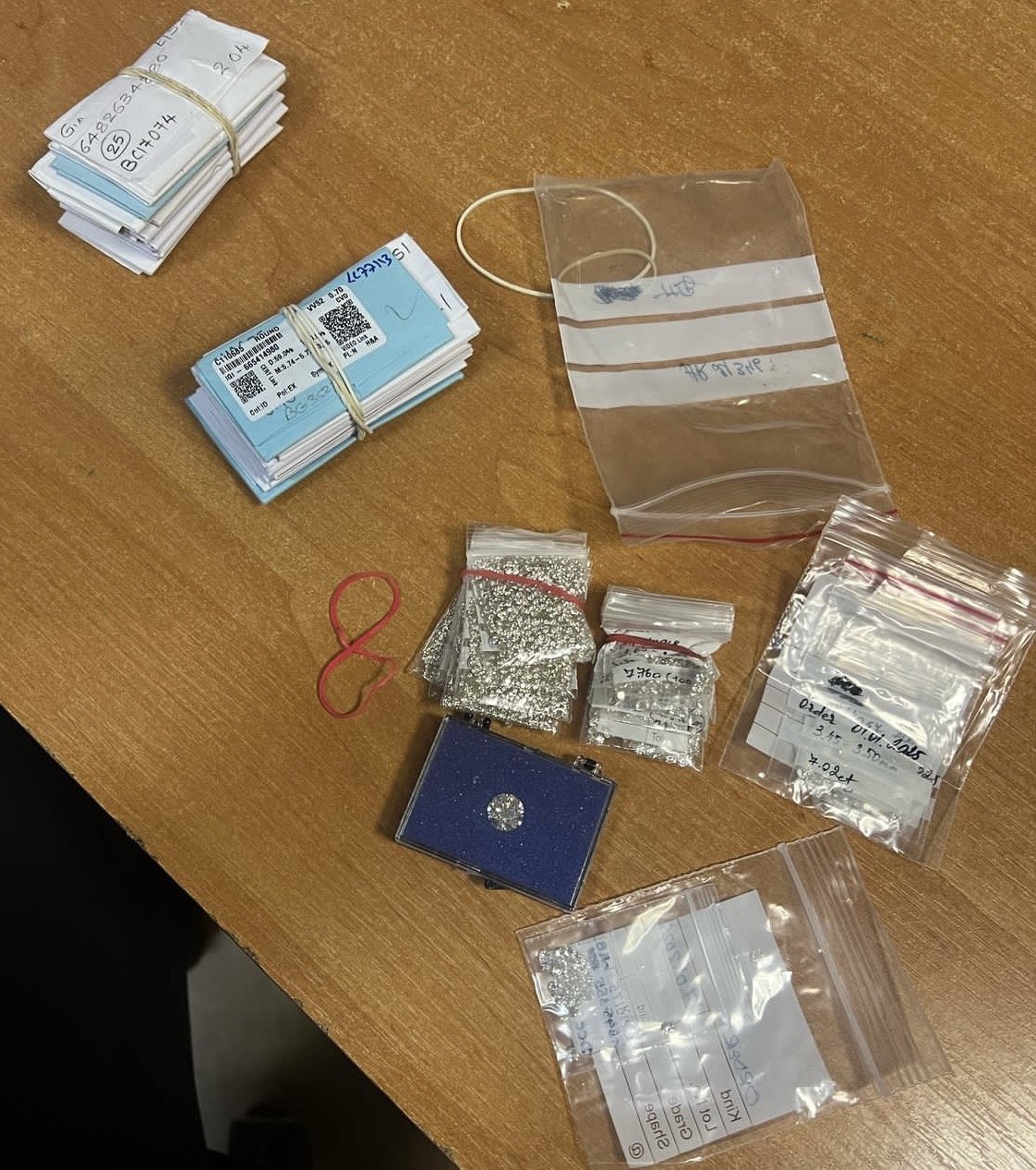 У згортку містилися 21 паперовий, 17 зіп-пакетиків та пластиковий футляр з камінцями. Загальна вага вилученого за протоколом про порушення митних правил товару склала 191 грам. В упакуванні також була інформація з маркуванням про прозорість/чистоту, розміри, якість огранки та навіть QR-коди з посиланням на авторитетне джерело Гемологічного інституту у США, що видає сертифікати якості міжнародного зразка на діаманти.