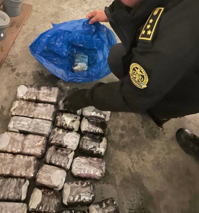29 згортків, замотаних у харчову плівку, виявили у ході повного митного огляду з використанням технічних засобів митного контролю. Вага вилученого «гашишу» складає понад 21 кілограм. Вартість на «чорному ринку» становить майже 400 тис. доларів США.
